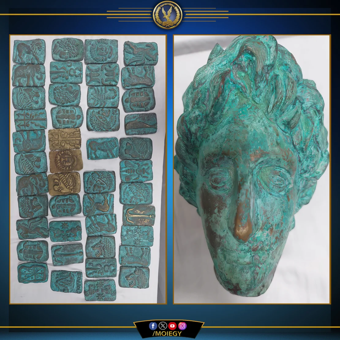 Egipskie ministerstwo spraw wewnętrznych skonfiskowało 448 starożytnych greckich i rzymskich artefaktów. Wśród nich znalazło się 305 monet, 53 posągi, 41 toporów, 14 kubków z brązu, 20 innych przedmiotów z brązu, 12 włóczni i trzy głowy posągów. Zabytki pochodzą z okresu od około 500 r. p.n.e. do 400 r. n.e.