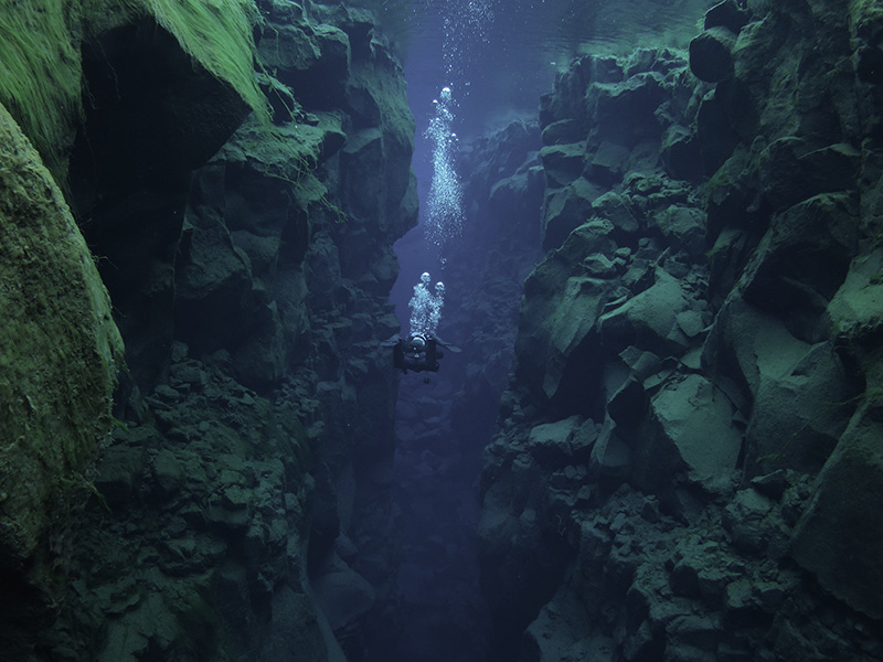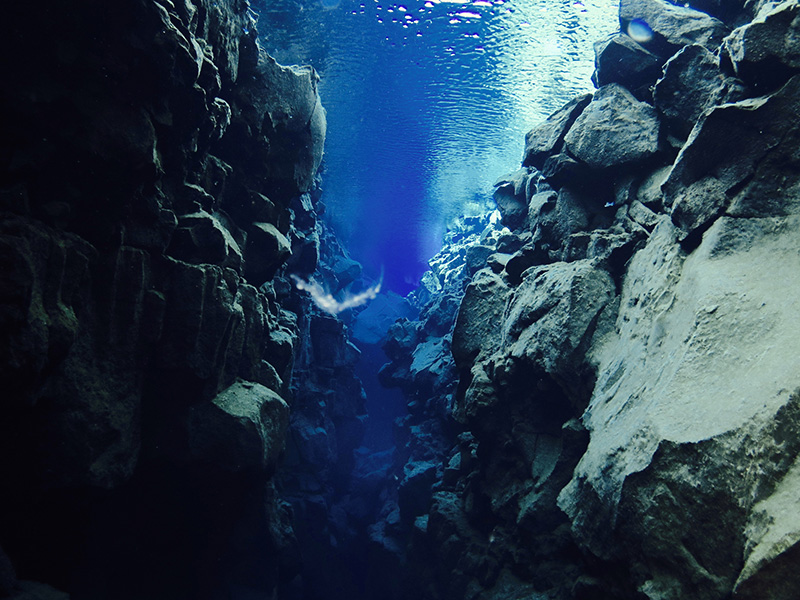 Szaleństwo? Może i tak… Ale Silfra to właśnie szczelina znajdująca się w jeziorze Þingvallavatn w Parku Narodowym Þingvellir, która powstała w wyniku pęknięcia ziemi i rozdzielenia dwóch płyt kontynentalnych na Amerykańską i Euroazjatycką, które każdego roku oddalają się od siebie o 2 cm.