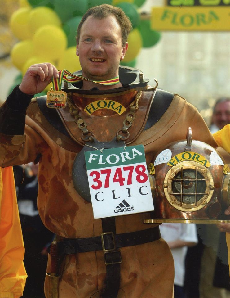 To nie pierwsze wyzwanie 58-latka w klasycznym stroju nurka, zasłyną bowiem już w 2002 roku, udziałem w Londyńskim maratonie, który ukończył w ciągu 5 dni, 8 godzin, 29 minut i 46 sekund.