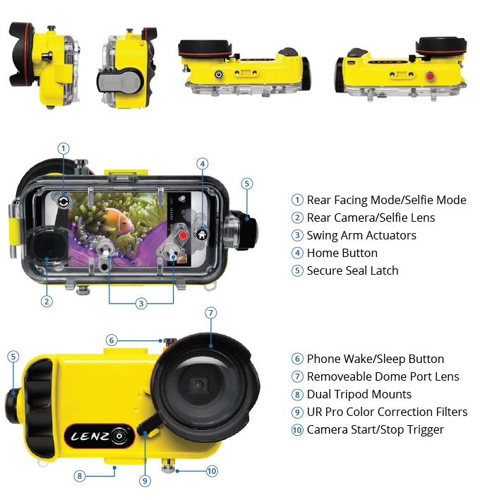 Urządzenie zostało zaprojektowane specjalnie dla iPhone 7 i 7 PLUS. Wytrzymuje zanurzenie do 100 metrów głębokości, ale to nie jedyna zaleta. Korpus wykonano z jednego kawałka aluminium, pokrytego anodowaną powłoką ceramiczną. Z tyłu obudowy jest panel akrylowy dzięki któremu użytkownik widzi wszystko to, co dzieje się na ekranie telefonu.