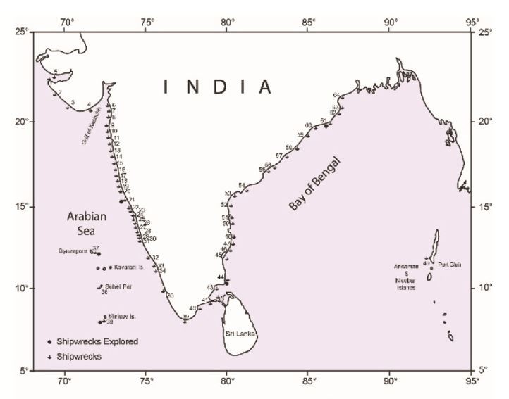 Według UNESCO około trzech milionów nieodkrytych wraków statków leży na dnie oceanu. W latach 1824–1962 ponad 12 000 żaglowców i okrętów wojennych zaginęło na morzach. Wiele z nich uległo zniszczeniu na indyjskich wodach przybrzeżnych.
