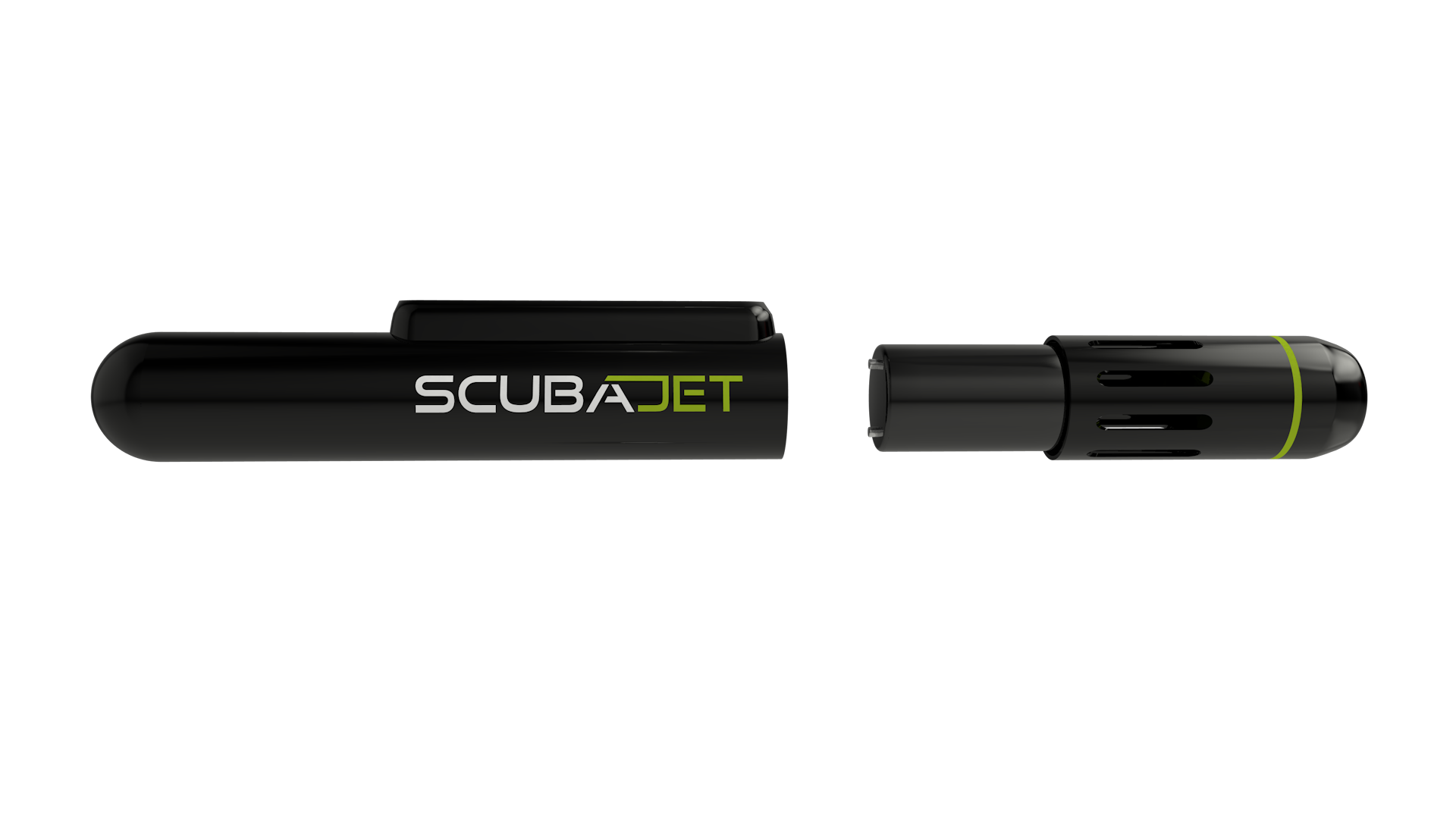 Scubajet czarny niepozorny mający 80 centymetrów cylinder o wadze około 2,4 kg, napędzany jest za pomocą silnika elektrycznego chłodzonego wodą o mocy 3,1 kW. Napęd umieszczony wewnątrz cylindra zasilany jest akumulatorem o mocy 1000 watów. Urządzenie może pracować także na większej baterii zewnętrznej np. 3000 W.