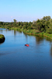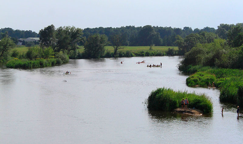 Rzeka spokojnym nurtem, idealnym dla amatorów turystycznego kajakowego pływania, poprowadzi nas zakolami przez urokliwe miejsca pełnie dzikiej nieujarzmionej natury, jak i piękne widoki okalające brzegi pół.
