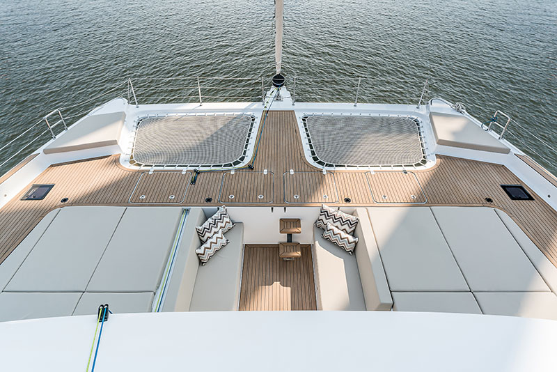 Luksusowy katamaran łączy w sobie cechy tradycyjnej łodzi żaglowej z nowoczesnym designem, oferując idealne połączenie na morzu jachtu do czarteru, jak i do długich podróży przez ocean. Wydłużona linia nadbudowy w połączeniu z wykończeniem w drewnie tekowym nadają linii klimatyczny charakter.