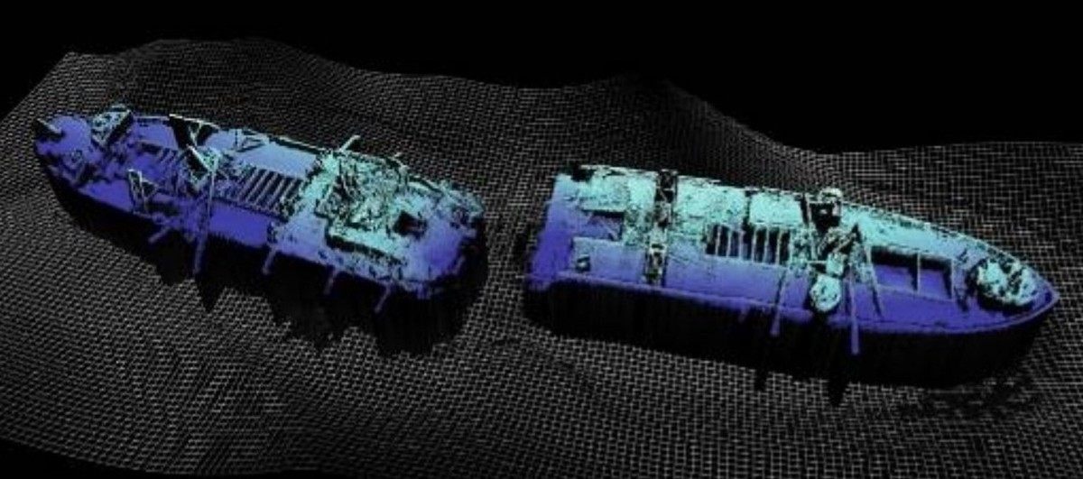 Fot.: Badanie wraku wykonywane przy użyciu sonaru RESON SeaBat 8125 i rejestrowane za pomocą QINSy