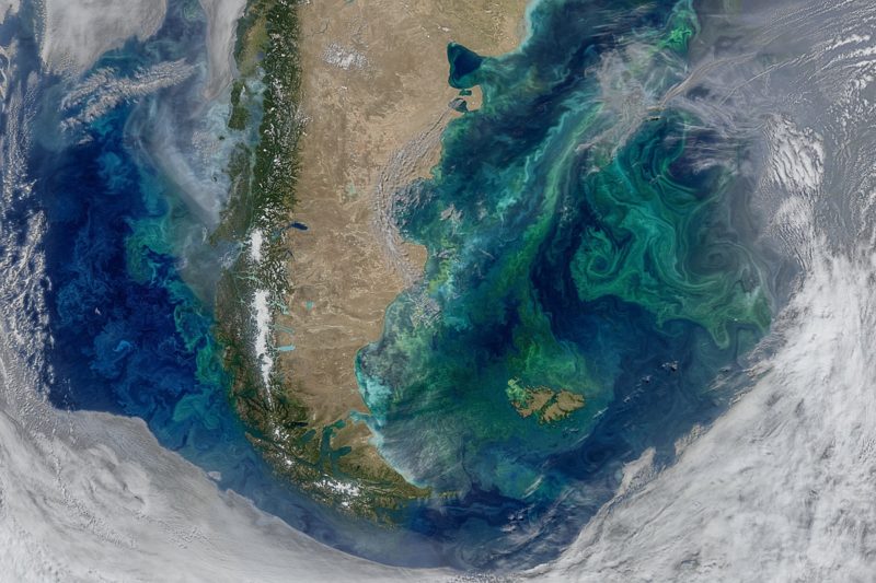 Odcienie wód okalające nasz glob zależą od interakcji światła słonecznego z tym, co znajduje się w danym miejscu w wodzie. Stosunkowo jałowe w życie morskie rejony oceanów z kosmosu wyglądają jak ciemnoniebieskie przestrzenie. Natomiast fitoplankton zawierający chlorofil, pochłaniający głównie widmo w niebieskiej części światła słonecznego, a mniej w zielonej, w efekcie nadaje regionom bogatym w życie zielony kolor.