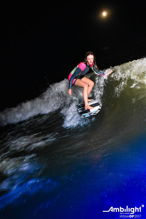 Całość można było śledzić na dużym telebimie. Dla zawodników nocne zawody były nie lada wyzwaniem, ale świetnie sobie poradzili, doskonale się przy tym bawiąc. Łódź, za którą płynęli wakesurferzy była oświetlona, a kolorowe światła i lasery oświetlały Kanał Giżycki. Tej nocy dopisała również pogoda. Było niemal bezwietrznie, dzięki czemu tafla wody na jeziorze był spokojna, będąc tym samym sprzymierzeńcem dla wszystkich zawodników.
